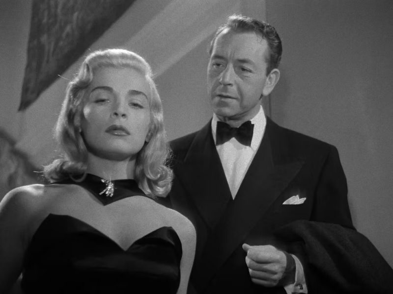 SECRET BEYOND THE DOOR uit 1947 was de vijfde en laatste keer dat Joan Bennett in een film van Fritz Lang speelde. Er schijnt nogal wat afgeruzied te zijn op en buiten de set en de film betekende het failliet van de maatschappij die Lang samen met Bennett en haar man, producer Walter Wanger, runde. Deze film noir is is een mix van de Hitchcockfilms REBECCA en SUSPICION en de mythe van Blauwbaard, overgoten met een dikke Freudiaanse saus. Bennett speelt Celia, die architect Mark Lamphere (Michael Redgrave) trouwt zonder hem echt te kennen. Ze begint al snel te twijfelen, en dat maken we mee via haar voice over, die niet alleen het verhaal vertelt maar vooral haar innerlijke stem, als reactie op haar situatie, weergeeft. In zijn huis, ook bewoond door zijn zus (Anne Revere), zijn zoontje en diens nanny (Barbara O’Neil), van wier bestaan ze niet eens op de hoogte was, onderhoudt Lamphere verscheidene kamers waarin moorden zijn gepleegd, geen replica’s maar met de echte rekwisieten nagebouwd. Eén kamer is afgesloten en mag niemand zien, ook Celia niet. Natuurlijk kan Celia de verleiding niet weerstaan en wanneer ze de deur opent slaat de schrik haar om het hart. Maar trekt ze wel de juiste conclusie? In een droomscène wordt de focus verlegd naar Mark, waarin hij terecht staat terwijl hij aangeklaagd wordt door zichzelf, en de rechter en de jury gehuld zijn in schaduwen. Vanaf dat moment weten we niet meer wat in Celia’s hoofd omgaat. De film gaat over schuld(gevoel) en noodlot, een vast gegeven in Langs werk. Als de juiste mensen in de juiste setting samenkomen is moord onontkoombaar, heeft de psycho-analiste, in de eindcredits genoemd als Intellectual Sub-Dem (Anabel Shaw), al eerder uitgelegd. De eindscène is zo opzichtig door de studio verplicht toegevoegd dat je wel een enorme onbenul moet zijn om die serieus te nemen, maar de Hays-code vereiste nu eenmaal een happy ending. “Wie gelooft nu dat een zo getraumatiseerd iemand zo snel geneest?” zei Lang er zelf over. Allesbehalve een perfecte maar wel een fascinerende, prachtig belichte en gefotografeerde film.